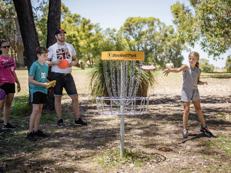 Disc Golf ist eine moderne Variante des Golfspiels. Mit Frisbeescheiben oder speziellen Golf-Discs wird hierbei ein Hindernisparcours durchspielt. Dabei wird immer von der Position weitergespielt, an der die Frisbee liegen geblieben ist. Das Ziel, der Discgolf-Korb, sollte dabei mit so wenigen Würfen als möglich erreicht werden. Eine Scheibe gilt als „eingelocht“, wenn sie in den Ketten hängen oder im Auffangkorb darunter liegen bleibt. Wer die gespielten Bahnen mit der geringsten Wurfanzahl gemeistert hat, ist der Sieger.