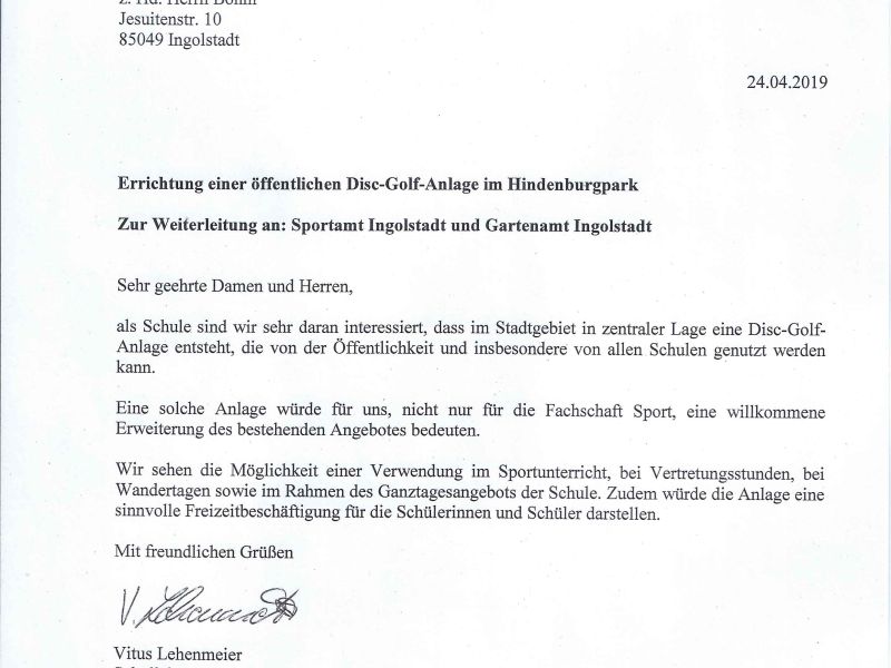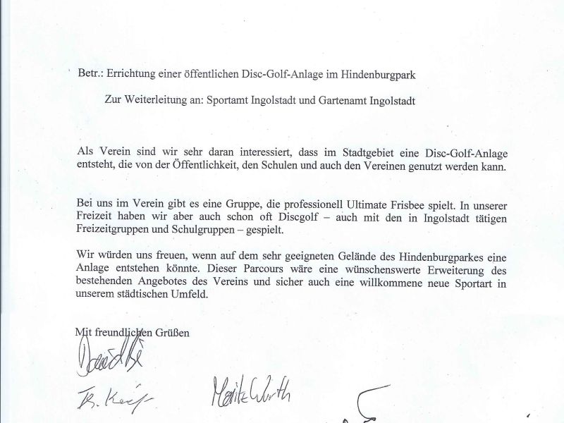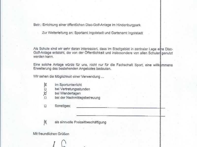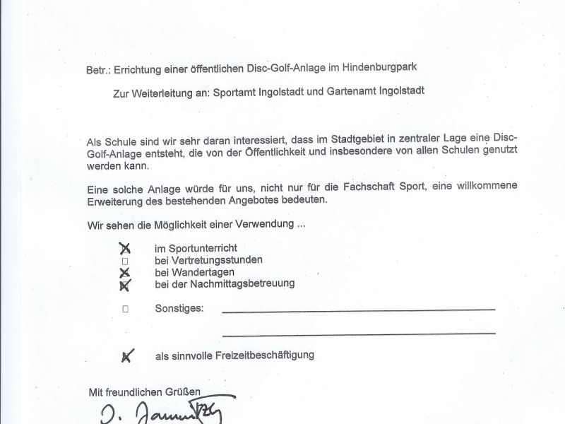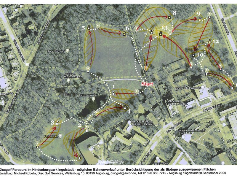 In Ingolstadt kommen zwei Parks für eine DGAnlage in Betracht: Luitpoldpark und Hindenburgpark. (Der Klenzepark ist zu stark frequentiert, die anderen Parks zu klein oder eintönig)