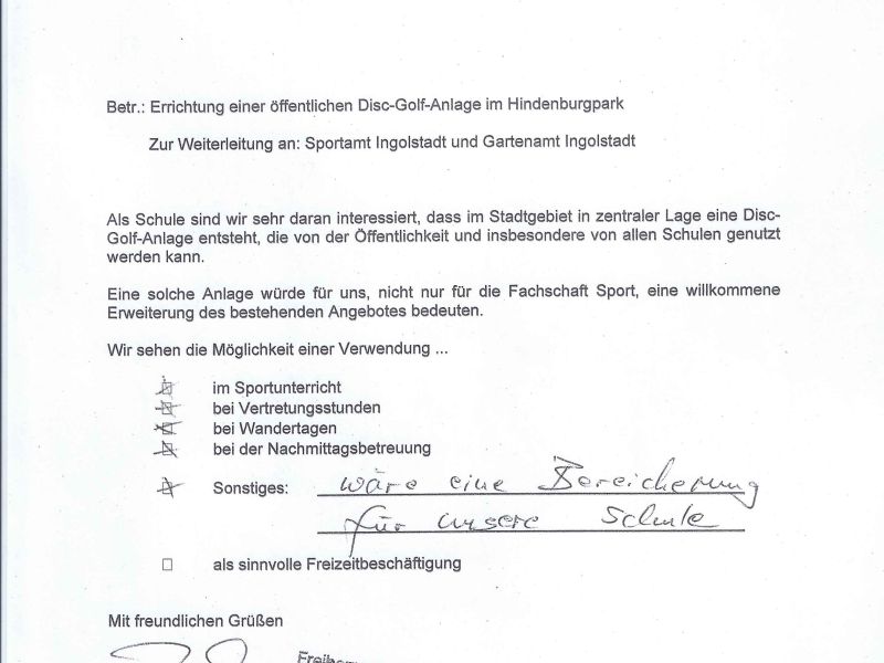 Der Schwabmünchner Disc Golf Verein “Disc Golf Guerilla” trägt gemeinsam mit der Stadt zur Erhaltung und zur Kontrolle des Spielbetriebs bei.