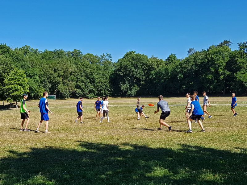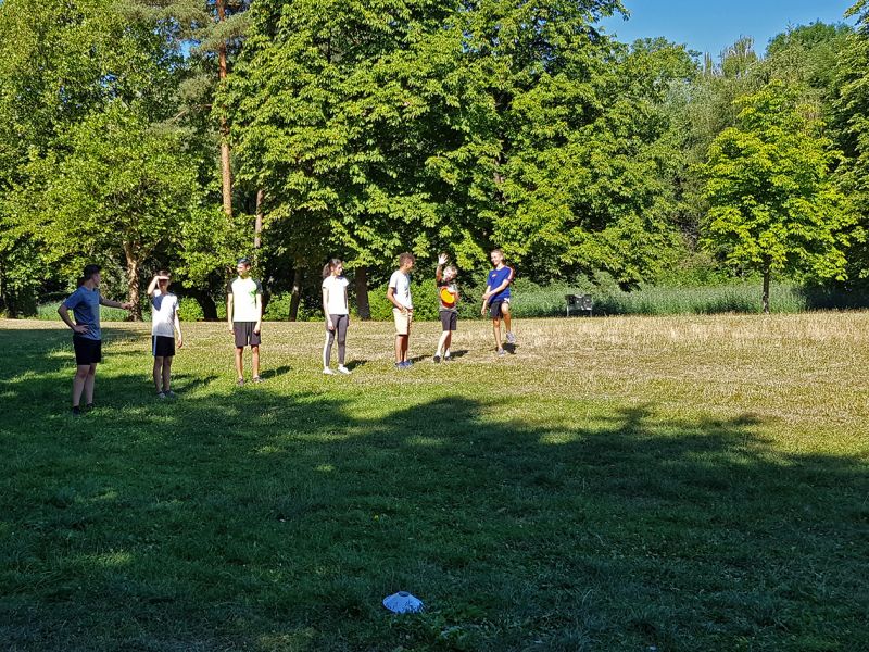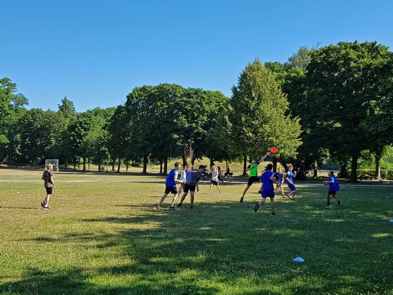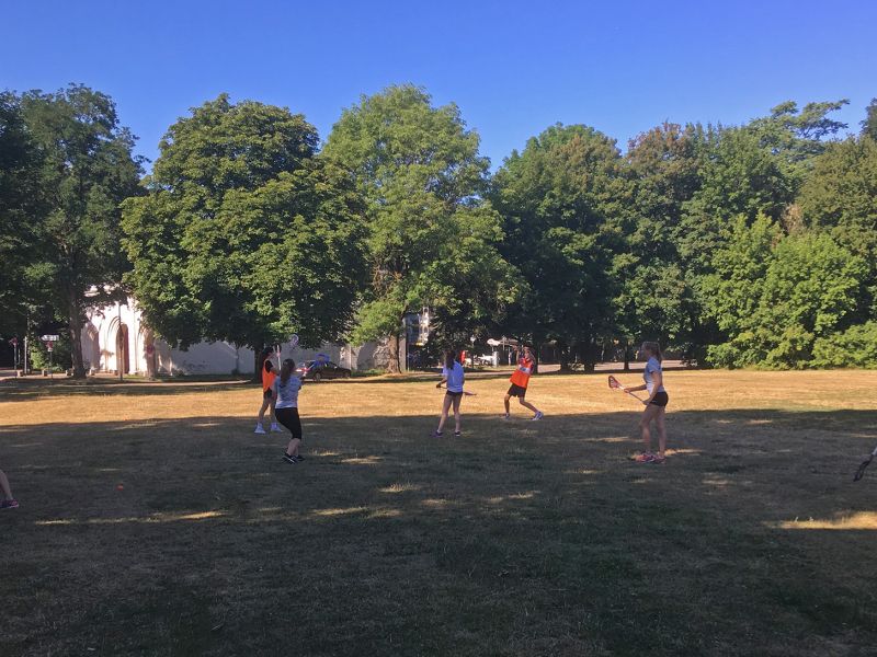 Unter Anleitung von Profis aus dem Verein konnten 16 Interessierte - einige davon auch schon vereinserfahren - endlich einmal ausgiebig mit Gleichgesinnten spielen. Trotz nicht unerheblicher Morgenhitze wurden die vier Schulstunden erbarmungslos ausgenutzt und am Ende zeigten sich alle beim Feedback begeistert über den gelungenen Kurs. Unser Dank gilt natürlich besonders unseren Unterstützern David und Daniel vom TSV-Nord.