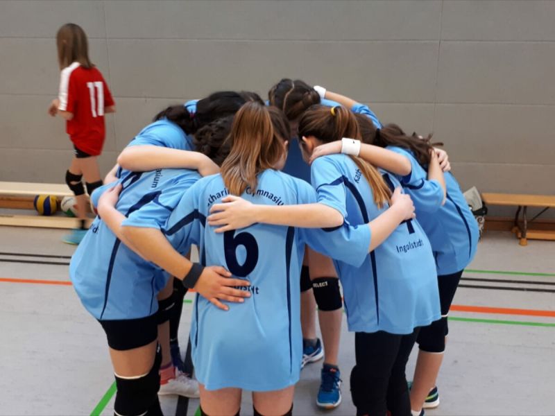 Als Siegerinnen der Region Ingolstadt/Eichstätt/Neuburg und Schrobenhausen durfte die Katherl-Mannschaft sich im Bezirksfinale mit Spielerinnen aus ganz Oberbayern messen. Die Schülerinnen standen nun völlig unbekannten Gegnern mit viel höherem Niveau als bisher gewohnt gegenüber. Außerdem hatten sie dieses Mal ihren bisherigen Erfolgscoach Niklas Weber nicht dabei. Im ersten Spiel traten die Ingolstädterinnen gegen die Heimmannschaft aus Trostberg an. Im ersten Satz fanden die Gastgeber nicht so gut ins Spiel. Im zweiten Satz erschienen sie jedoch unerwartet präsent auf dem Feld. So mussten die Mädchen noch den Tie-Break für sich entscheiden. Das Endergebnis lautete 2:1 für das Team des Katharinen-Gymnasiums. Nach diesem ersten Erfolg musste das Katherl nur noch Gars besiegen, um ins Finale des Bezirksentscheids zu gelangen. Allerdings war eine wichtige Spielerin verletzt und konnte nur von der Bank aus als Coach fungieren. Trotz der erschwerten Umstände konnten die Schülerinnen aus Ingolstadt den ersten Satz gewinnen. Im zweiten Satz allerdings wurden sie von den nun starken Angriffen des gegnerischen Teams sowie der ein oder anderen nicht ganz eindeutigen Entscheidung des Schiedsrichters überrascht und mussten erneut im Tie-Break alles geben. Leider reichte es nicht ganz zum Gruppensieg, dennoch hatte die Ingolstädter Mannschaft noch die Chance als Dritter die Halle zu verlassen. Da der Leistungsdruck wie weggeblasen schien, konnte das überlegene Katherl-Team das Spiel flott mit einem letzten deutlichen 2:0 Gewinn beenden. Wir möchten uns auch dieses Mal wieder bei Frau Schuster für die Organisation und Begleitung und natürlich auch für die Unterstützung von Frau Först beim Regionalfinale bedanken. Ein weiteres Dankeschön geht an unseren Trainer Niklas Weber (Q11).