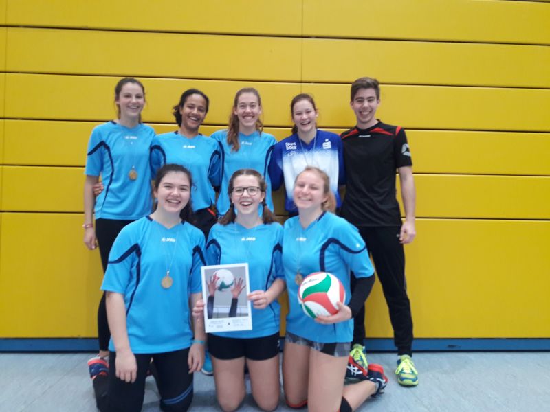 Die Mannschaft (Sandra König 10e, Evalina Jung Q11, Aurelia Workneh 10e, Eva Stelz 9a, Klara Falkenberg Q11, Carina Funk 8 und Nina Wilhelm 9+d) bedankt sich bei unserem engagierten Trainer Niklas Weber (Q11) und den betreuenden Lehrern Herr Kapaun und Frau Hörnig.