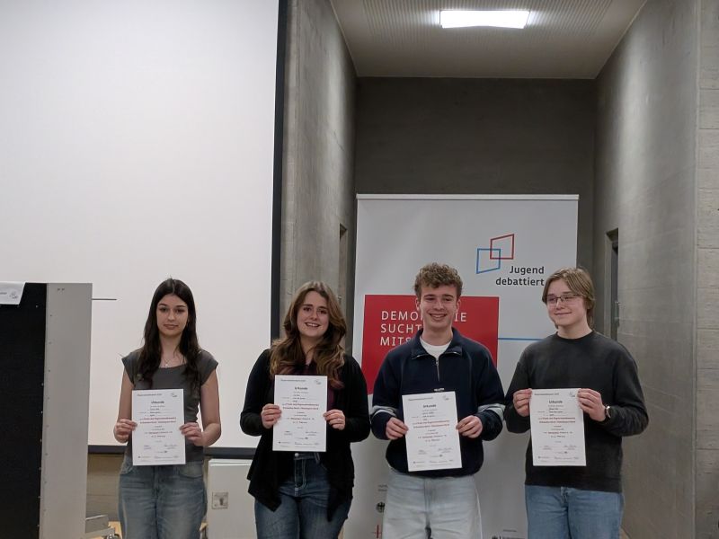 Zwei dritte Plätze konnten die beiden Schülerinnen des Katharinen-Gmynasiums, Marlene Bohla (9d) und Muni Li (Q12), beim Regionalwettbewerb von Jugend debattiert einfahren, der dieses Mal am Scheiner-Gymnasium stattfand.