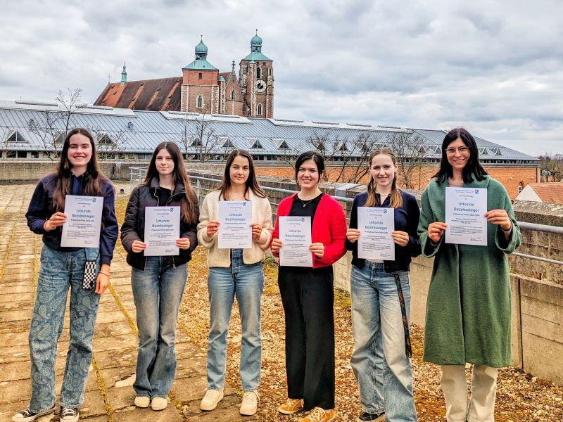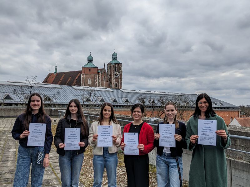 Gratulation an die Schülerinnen (v.l.) Lena Dunst, Emily Meyer, Lisa Frank, Carina Funk, Mirjam Steck (es fehlt Maja Bolle, alle Q12/G8)!
