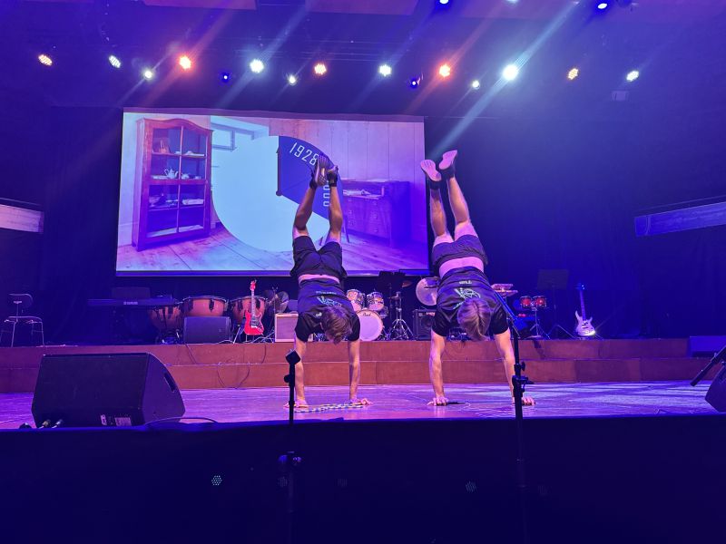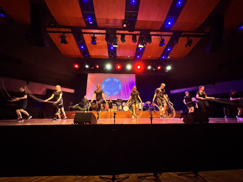 Ins Konzert führte der Auftritt der Bläserklasse 5 ein, die nach nur einem halben Jahr an ihren Instrumenten bereits beeindruckende Fortschritte zeigt. Die darauf folgenden Solist:innen und Gruppen überzeugten mit ihrer Kreativität und Hingabe. Allen voran Carina Funk, die mit ihrem eigenen, gefühlvollen Song beeindruckte, oder Tim Denninger, der mit einer Rachmaninoff-Darbietung zahlreiche Noten in kürzester Zeit meisterte. Die Rope Skipper leiteten mit ihrer energiegeladenen Choreografie zu einer musikalischen Zeitreise in die Pause.