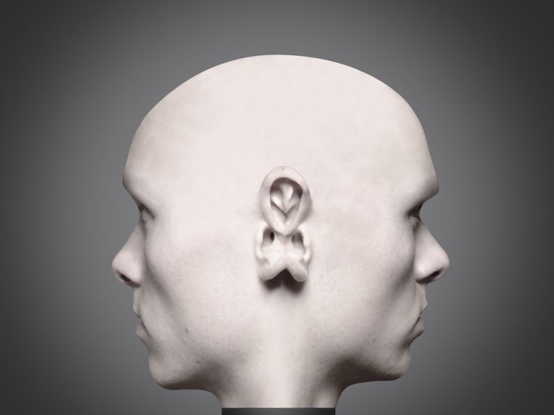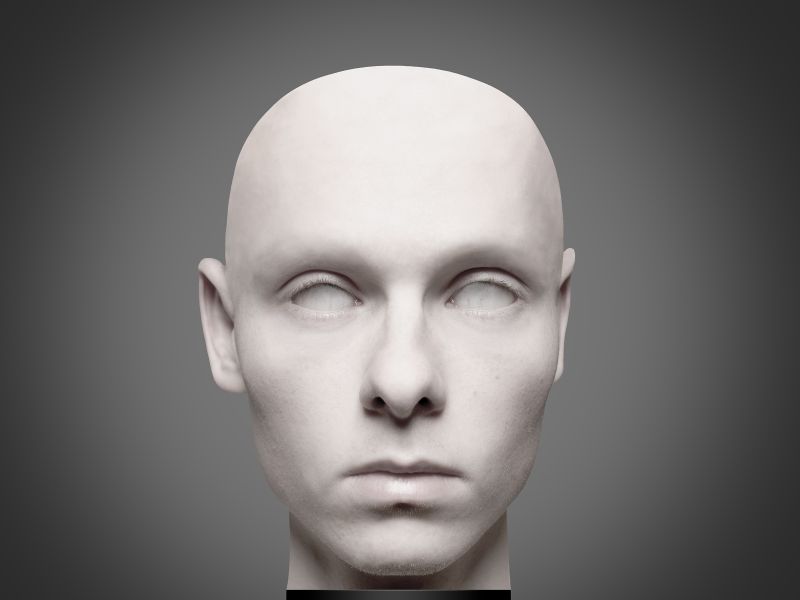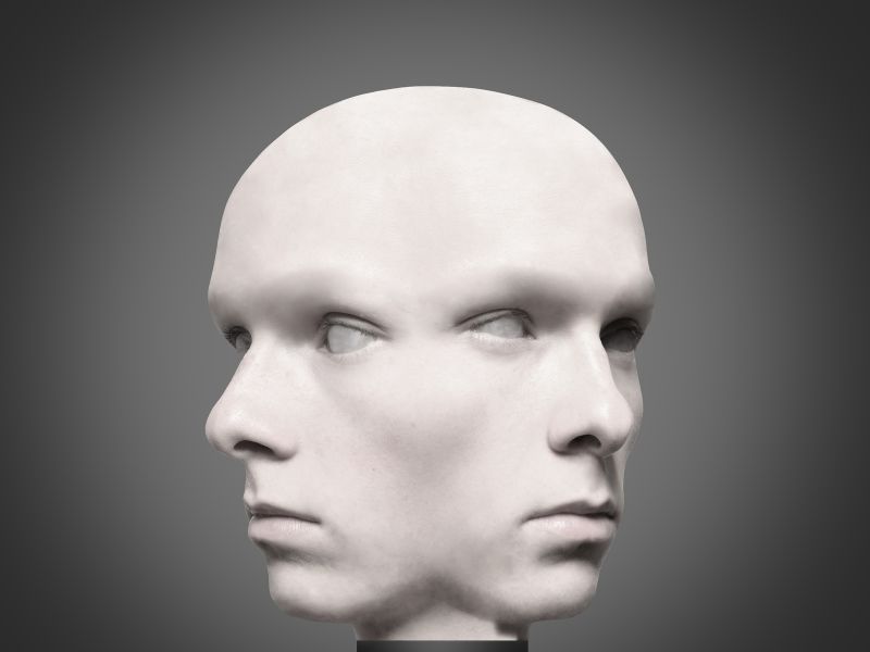 „Ausgehend von fotografischen Selbstporträts spielt die Arbeit mit den Wahrnehmungen und Empfindungen des Betrachters: Was ist reales Abbild, was künstlich geschaffenes ästhetisches Objekt? Dazu werden die am Anfang stehenden Selbstbildnisse digital bearbeitet, Einzelbilder kombiniert, rotiert, freigestellt, neu hinterlegt etc. Resultat ist eine Serie von fünf quadratischen Arbeiten, die den verfremdeten Kopf aus verschiedenen Blickwinkeln zeigen: unnahbar anmutende, jeweils an die Abbildung einer steinernen Porträtbüste erinnernd. Spielerisch und gleichzeitig sehr ernsthaft wird mit den Möglichkeiten der digitalen Bildbearbeitung agiert. Es wurden Übergänge modelliert, Farbwerte entsättigt und angepasst... Im Detail bleiben zwar natürliche Bestandteile des Gesichts und des Kopfes stehen (z. B. Wimpern), oft wird jedoch Menschliches wie Haare oder Pupillen geleugnet. Von der Idee bis zur Präsentation zeugt die Arbeit von einer intensiven Auseinandersetzung und einem großen Geschick im Umgang mit digitalen Bildmitteln. Dementsprechend imposant und ausgereift kommt das Resultat daher.”