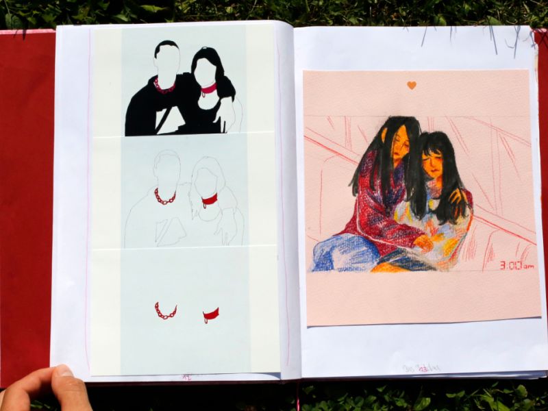 Bei ihrer Gemeinschaftsarbeit setzten sich die beiden innerhalb des P-Seminars künstlerisch mit verschiedenen Arten von Zuneigung und Zwischenmenschlichkeit auseinander. Dabei ist ein im Selfmade-Stil gehaltenes Buch entstanden, das eine Zusammenstellung von Mixed-Media-Werken beinhaltet, wobei ganz unterschiedliche, vielfältige Ausdrucksmöglichkeiten zum Einsatz gebracht werden. Von Zeichnung bis Fotografie ist das Gesamtwerk genauso divers wie die Liebe selbst, sowohl inhaltlich als auch formal, und spiegelt so die verschiedenen Facetten und den jeweiligen Charakter von Zuneigung und Intimität wider. Die Jury hob lobend den „Mut und die dahinter stehende Idee“ hervor. Die für den Wettbewerb filmisch digitalisierte Fassung der Arbeit, kann hier angesehen werden.