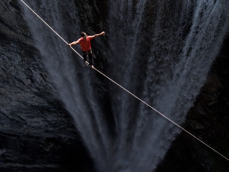 Zwei Felsen, dazwischen eine Slackline, darunter viele hundert Meter nichts. Ein atemberaubender Anblick in den Dolomiten. Auf knapp 3000m Höhe geht ein durchtrainierter Typ bei Eiseskälte barfuß knapp 500m durch die Wolken – auf einem 2,5cm breiten Band... Wir klicken uns weiter durch tausende solcher Videos von Verrückten, die auf verschiedenste Weisen den großen Kick suchen. Das Angebot an spektakulären Videoclips aus der Welt der Extremsportler ist schier unendlich. Was aber ist es, das uns den einen Film bis zum Ende anschauen lässt, während wir den anderen nach wenigen Sekunden wegklicken? Was packt uns? Woran lässt sich festmachen, wann ein Kurzfilm gelungen ist? Und – welche Typen machen eigentlich solche Aufnahmen? Valentin Rapp filmt seit Jahren alpine Bergsportler bei ihren waghalsigen Unternehmungen. Der junge Oberbayer hat sich vor allem in der Szene der Highliner, die in großer Höhe gespannte Slacklines an allen Orten der Welt begehen, in kurzer Zeit einen Namen gemacht. Ob neuer Free–Solo Weltrekord an den Hunlen Falls in Kanada oder ein einzigartiges Highlineprojekt an der wilden Küste Tasmaniens – Valentin Rapp fängt die Momente voller Adrenalin und die unvergleichliche Schönheit der Kulisse mit seiner Kamera ein und verpackt sie in Clips, die uns mitnehmen in eine Welt voller Freiheit und Abenteuer. Branchengrößen wie Adidas oder Goretex vertrauen auf seine Künste, wenn es darum geht, Outdoorprodukte mit den passenden Emotionen zu verknüpfen.
