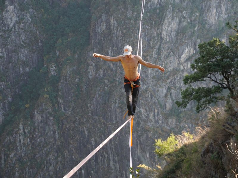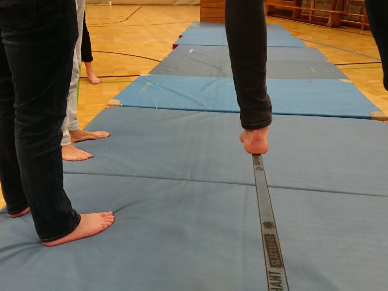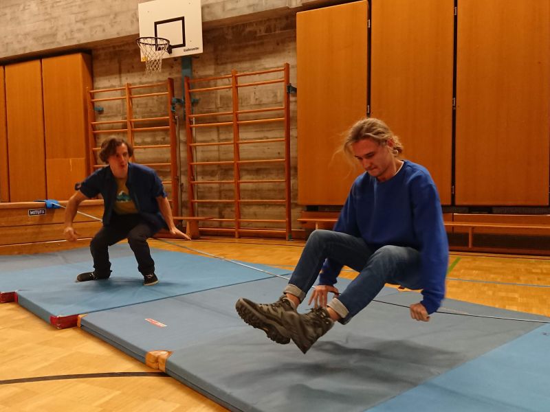 Alle Interessierten konnten anschließend noch ganz praktisch unter Anleitung des mehrfachen Weltrekordlers ihre ersten Schritte auf einer Slackline gehen oder ihre vorhandenen Fähigkeiten ausbauen.