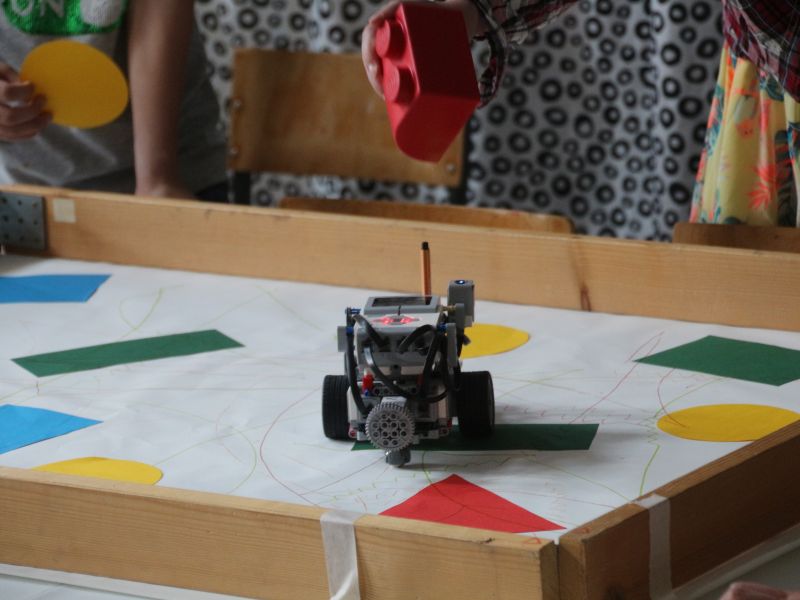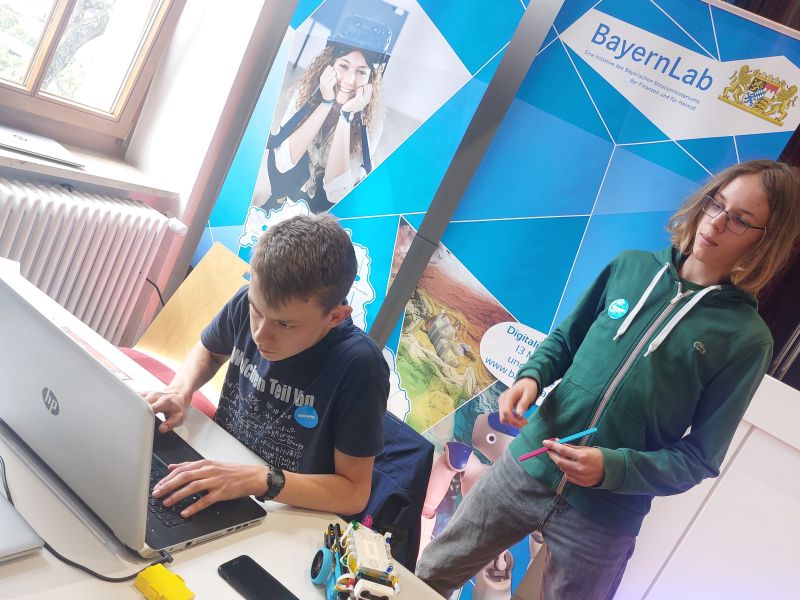 Am Freitag, dem 24. Mai, war die „Lange Nacht der Unternehmen“ in Ingolstadt. Ein Veranstaltungsort war auch das Museum für Konkrete Kunst. Dort durften wir in einem kleinen Nebenraum einen Kurs zum Thema Robotics leiten. Obwohl wir nicht allzu viele Teilnehmer hatten, hat das Programmieren erstaunlich gut funktioniert und die teilnehmenden Kinder haben viel gelernt. Zum Schluss des Workshops könnten unsere Roboter zwei große Blätter mit zufälligen, aber trotzdem bunten Linien und Kurven zeichnen. Uns allen hat es sehr viel Spaß gemacht!
