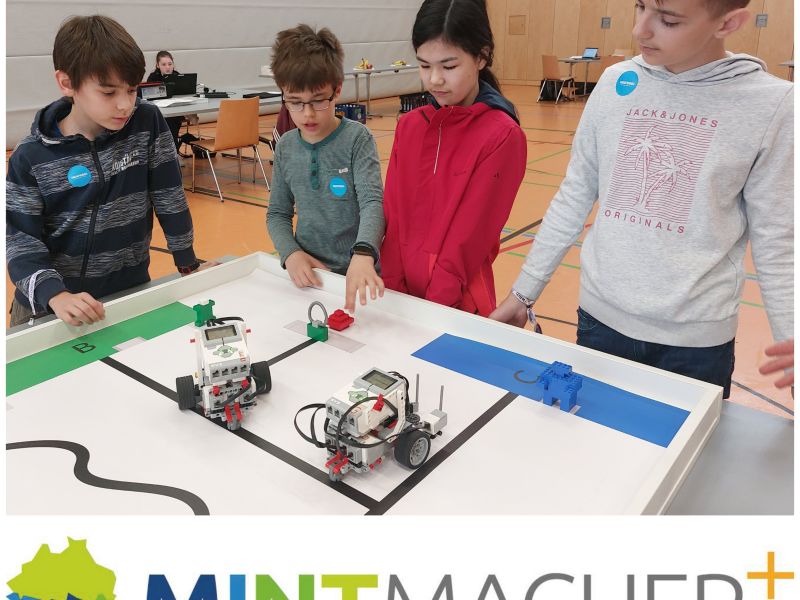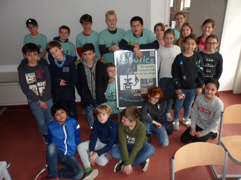 Bereits das dritte Schuljahr waren die Schüler und Schülerinnen des Wahlfaches Robotics im März mit ihren EV3s aktiv. Zuerst wurde für einen Vormittag die Grundschule in Etting besucht, eine Woche später kamen alle fünf Klassen der Grundschule „Auf der Schanz“ zu uns ans Katharinen-Gymnasium.