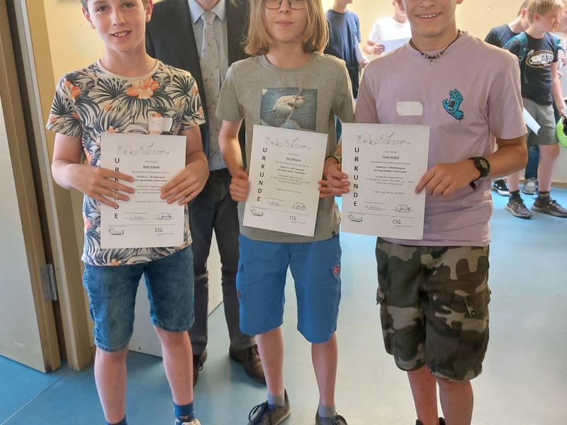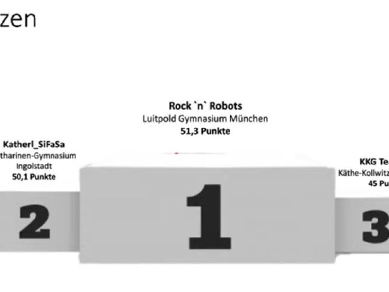 Nach weiteren zwei Stunden standen dann die Plätze fest: Bei elf teilnehmenden Gruppen schafften die zwei Mannschaften Platz 6 und 2. Zusammen mit Schülern vom Scheiner, vom Reuchlin und vom Gymnasium Gaimersheim darf sich das „Silberteam“ auf eine Führung im Roboterlabor der THI Ingolstadt im Herbst freuen!