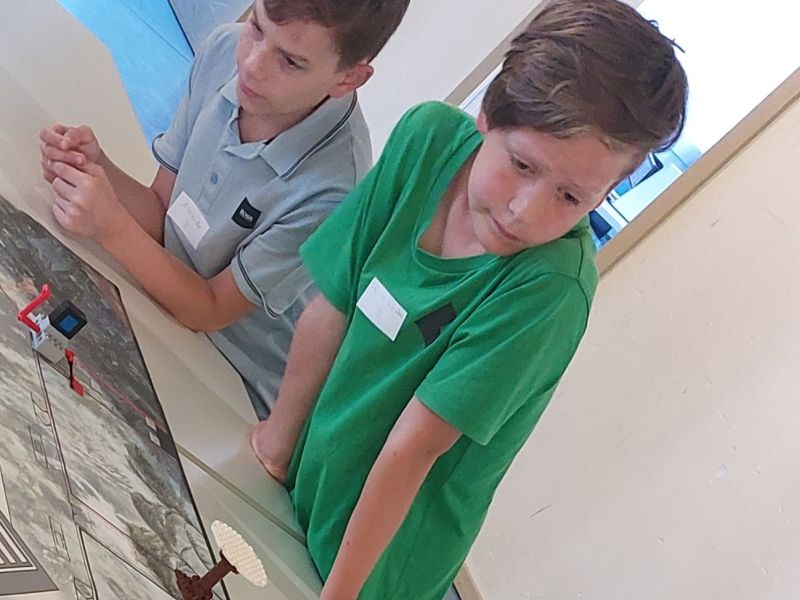 Nach der Begrüßung durch Schulleiterin Frau Jamnitzky wurde zwei Stunden lang am Spielfeld ausprobiert und programmiert, um möglichst viele Aufgaben bewältigen zu können. Danach ging es in die Wettbewerbsphase.