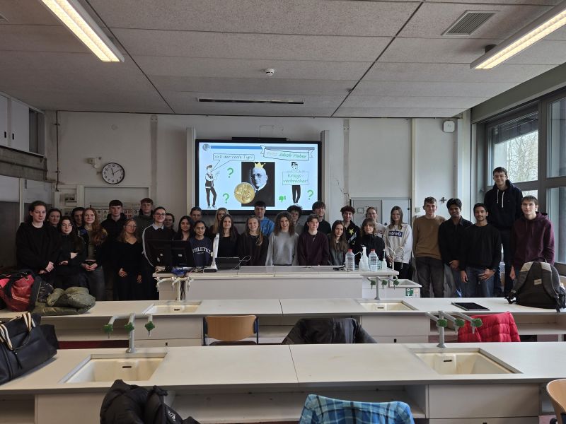 Wie bewertet man die wissenschaftliche Leistung einer Person, wenn sie sowohl großen Fortschritt als auch schwerwiegende moralische Fragen mit sich bringt? Mit genau dieser Herausforderung beschäftigten sich die Schülerinnen und Schüler der Leisungsfächer Chemie und Geschichte des Katharinen Gymnasiums am 05.03.2026 in einer gemeinsamen Doppelstunde im Rahmen des einzigartigen Projekts „History meets Chemistry“.