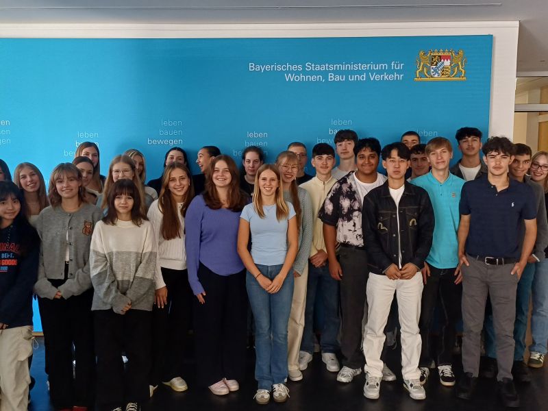 Nach einer leckeren Brotzeit und interessanten Vorträgen im „Bauministerium“, wie es von den Mitarbeitern genannt wird, durften die Schülerinnen und Schüler sogar das Büro des Ministers Christian Bernreiter betreten und es sich bei ihm bequem machen, während die persönliche Referentin Kristina Rehwald „aus dem Nähkästchen plauderte“.