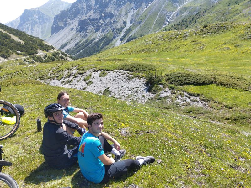 Aber nun mal etwas detaillierter: Früh morgens machten wir uns von Taufers auf den Weg, um das Val Müstair zu durchqueren und anschließend 1000 harte hm hinauf ins Val Mora zu bestreiten. Bis dahin war das wohl das anstrengendste Stück unserer gesamten Tour. Gleichzeitig war die Landschaft so einzigartig und wunderschön, dass unser Schmerz betäubte wurde und alles erreichbar erschien. Wasserfälle, reißende Gebirgsbäche, karge Felsformationen und Ausblicke in endlos erscheinende Tiefen machten uns das besondere unserer Reise bewusst.