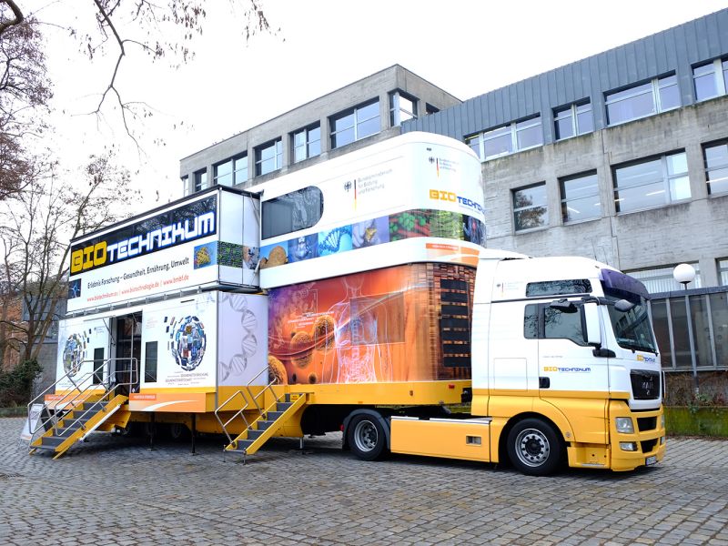 Das Kernstück der Initiative – die mobile Erlebniswelt BIOTechnikum – ist Labor, multimediale Ausstellung, Kino und Dialogforum zugleich. Besucherinnen und Besucher des doppelstöckigen Trucks (Länge: 16,5 m, Breite: 7,5 m, Höhe: 6,2 m, ca. 100 m2 Innenfläche) erhalten im Gespräch mit den drei projektbegleitenden Wissenschaftlern Informationen zu Grundlagen, Forschungs- und Anwendungsgebieten der Biotechnologie sowie Ausbildungs- und Karrierechancen in diesem Zukunftsfeld.